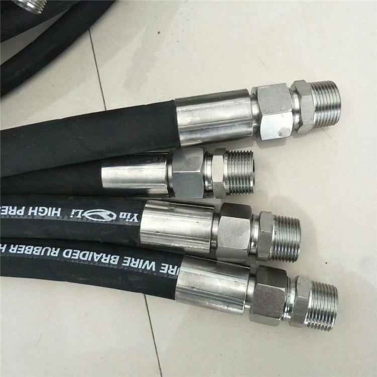 装配时,若扣压量过小,即接头与胶管间压得过松时,在油压的作用下胶管在使用初期便有可能从接头中脱出;若扣压量过大,则接头与胶管压得过紧,易导致胶管内层受到局部破坏,产生裂纹,高压油会从破裂处直接进入钢丝层,再沿钢丝间的缝隙窜到外套尾部喷出,或一直沿钢丝层窜到某处积聚起来,使外层胶产生鼓包甚至破裂。