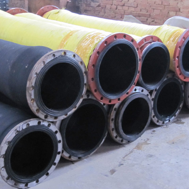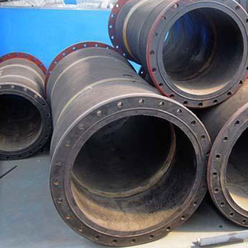 疏浚胶管用途:法兰式的疏浚胶管,这个是可以用在海上、港口和河流等挖沙船上运转的。