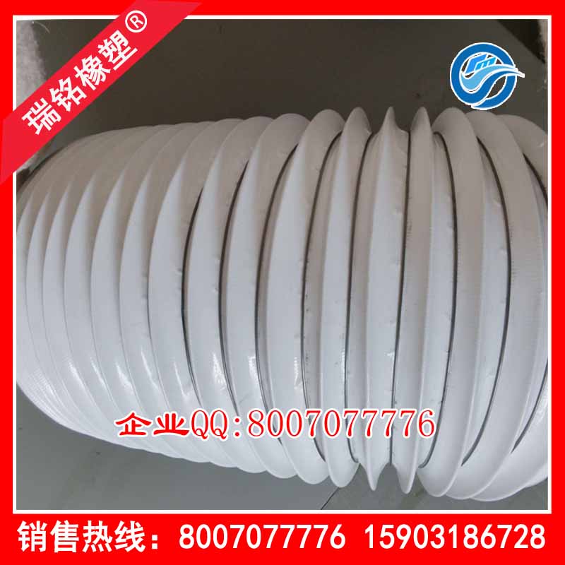 4.材料:好的高温风管采用优质硅橡胶制作,耐温耐腐蚀性更强。缠绕在弹性钢丝两边的玻纤线采用的是和基布一样的材料,同样具有耐温阻燃的效果,劣质的高温风管通常为节约成本采用的普通尼龙线,不耐温,不阻燃。